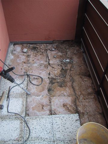 Vom Zahn der Zeit zerstörter Balkonbelag